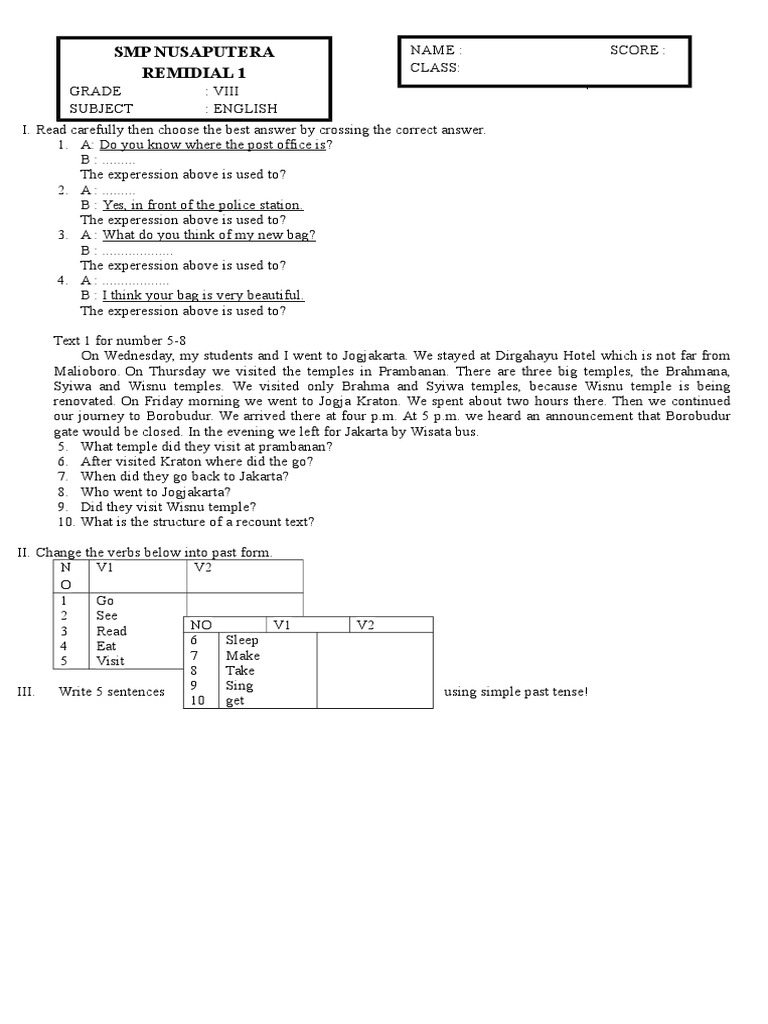 Berikut ini adalah fitur kebahasaan recount text. In the villages of bandung c. Contoh soal recount text recount text. Last week, my friend and i rode our bikes to the beach. Karena hal ini sangat menyenangkan, terlebih lagi bila liburan gratis! A trip to the zoo yesterday my family and i went to the zoo to see the elephant. Secara sederhana text ini juga sering disebut sebagai teks menceritakan pengalaman dimasa lampau. Soal recount text kelas 8 setelah cukup lama admin websiteedukasi absen karena kesibukan dunia nyata, kali ini kami hadir kembali dengan soal recount text smp kelas 8, contoh soal recount text kelas 8 smp ini berjumlah 20 soal pilihan ganda dengan jawabannya sehingga mudah untuk dijadikan latihan menjelang ulangan semester ataupun kenaikan kelas. When we got to the zoo, we went to the shop to buy some food to give to the animals.